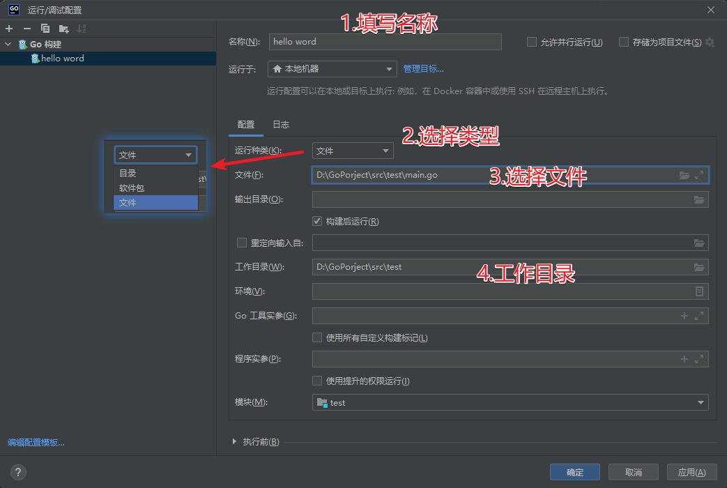 Go 构建或Go 测试其中之一,根据你的实际需要