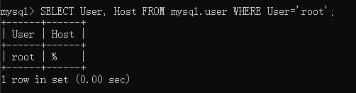 Host=%表示允许所有主机名或 IP 地址连接到该用户User='root'表示给 root 用户设置