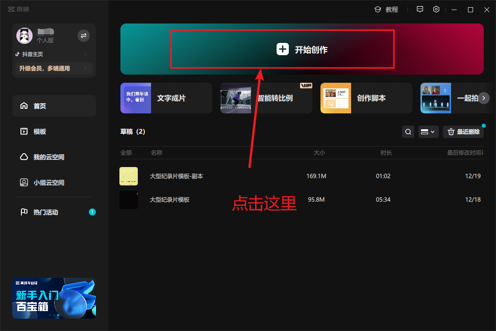 1)打开剪映,开始创作