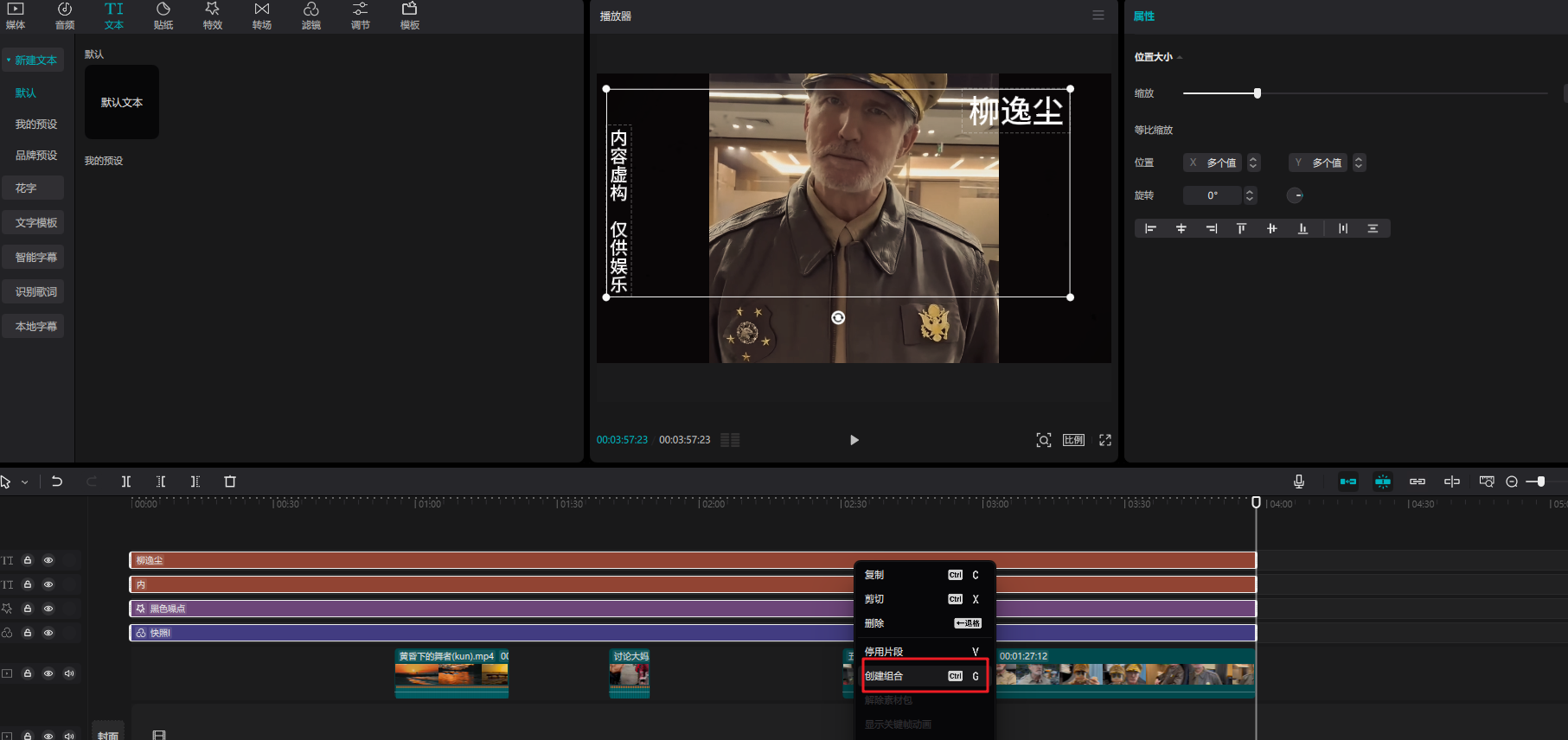 将四个内容创建成一个组合,方便一起调整